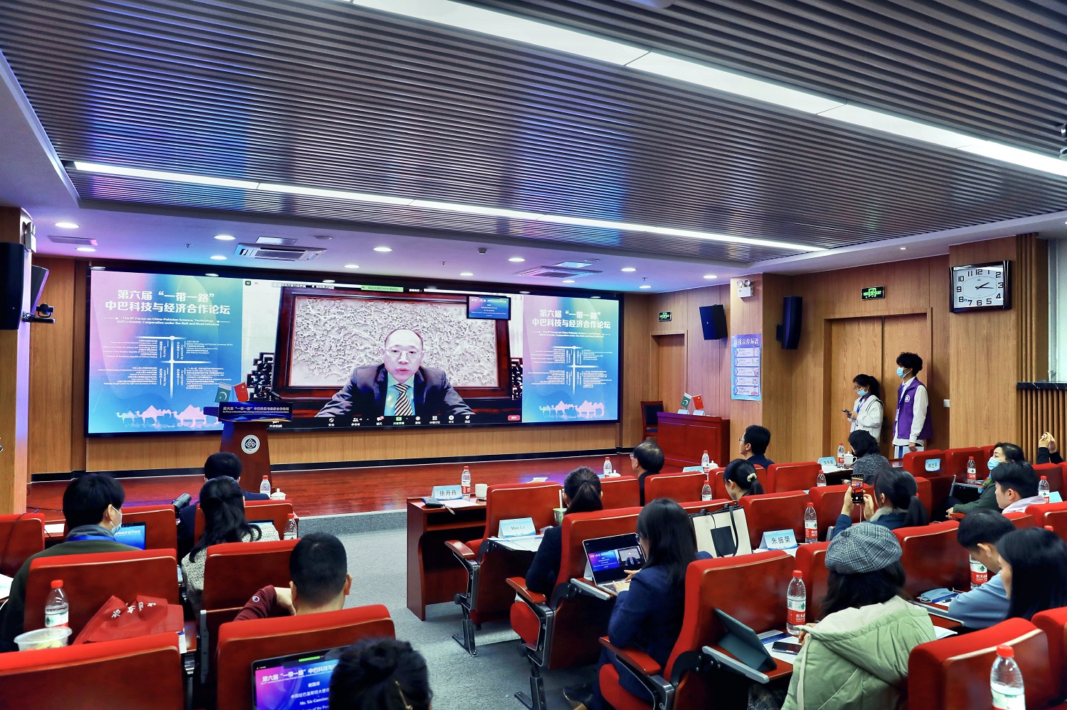 出席此次會論壇的還有北京科技國際交流中心、COMSATS大學中國研究中心、巴基斯坦科技信息中心,我校國際經管學院、經濟學院、外國語學院、國際交流與合作處,中巴兩國政府機構代表、科技組織代表、教師代表、學生代表、企業代表及媒體機構代表。