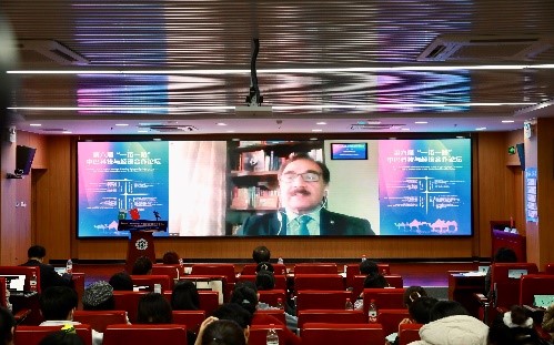 主旨發言環節由經濟學院院長倪國華主持。經濟合作組織科學基金會主席曼佐·侯賽因·索洛、巴基斯坦中國商會會長王子海、巴基斯坦科學基金會主席沙希德· 拜格、巴基斯坦華僑華人協會秘書長馬斌等先后發言。索洛感謝中國政府授予他中國政府友誼獎,未來將繼續推動中國與巴基斯坦及“一帶一路”國家在科技合作、科學教育和人文交流等領域的合作。王子海介紹了在青島設立的巴基斯坦中心在中巴經濟合作中發揮的重要作用,期待中巴在上合組織合作框架下開展更多的務實合作。拜格介紹了巴基斯坦科學基金會與中國機構開展的歷史悠久且卓有成效的合作,感謝中國科協、北京市科協和北京工商大學等機構在中巴科技合作中發揮的重要作用,期待與更多機構開展務實合作。馬斌介紹了華僑華人協會在巴基斯坦在文化傳播、公益活動和青年交流等領域做的重要工作,期待有更多機構共同開展中巴公益合作,增進中巴友誼。
