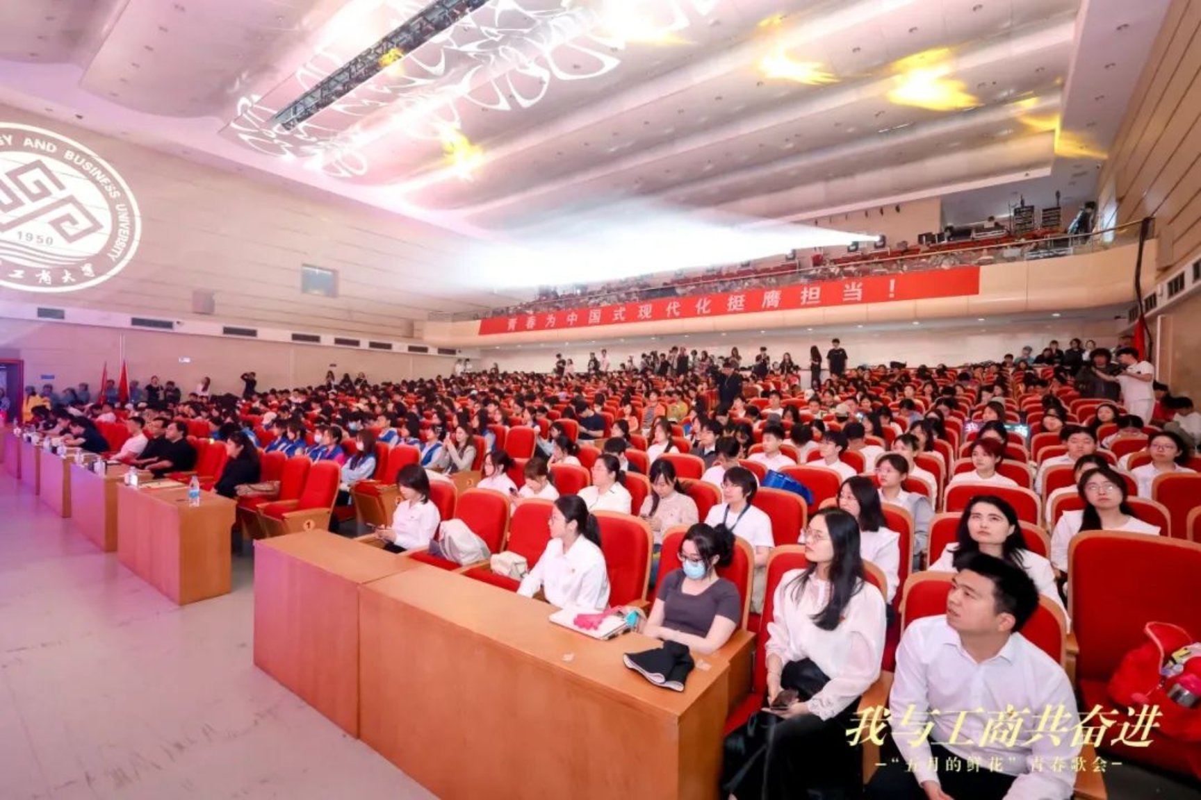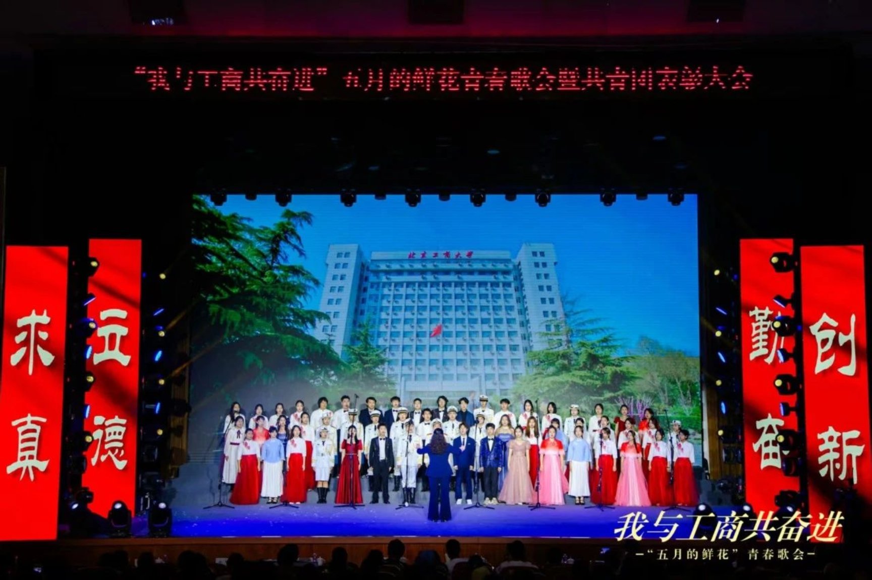 在校合唱團(tuán)、管樂(lè)團(tuán)帶來(lái)的《北京工商大學(xué)校歌》悠揚(yáng)的歌聲中,全體北工商人齊唱校歌,激揚(yáng)奮進(jìn)斗志,大會(huì)圓滿落幕。