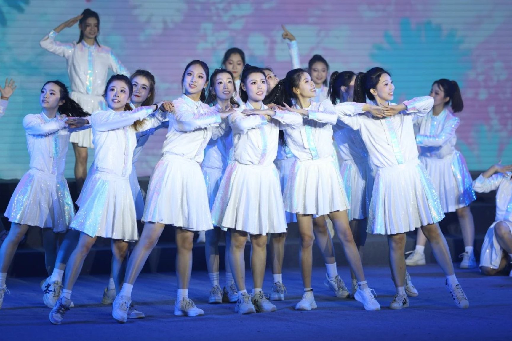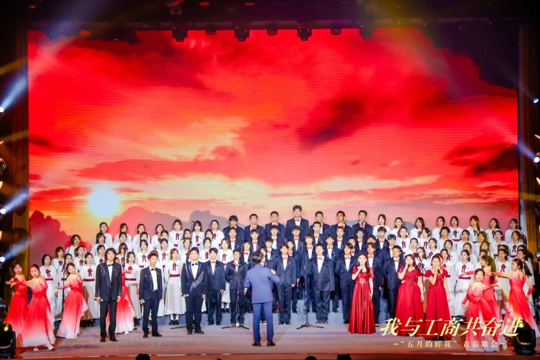 校舞蹈團(tuán)活力四射的《奔跑的青春》旋律,拉開(kāi)了青春歌會(huì)的序幕。