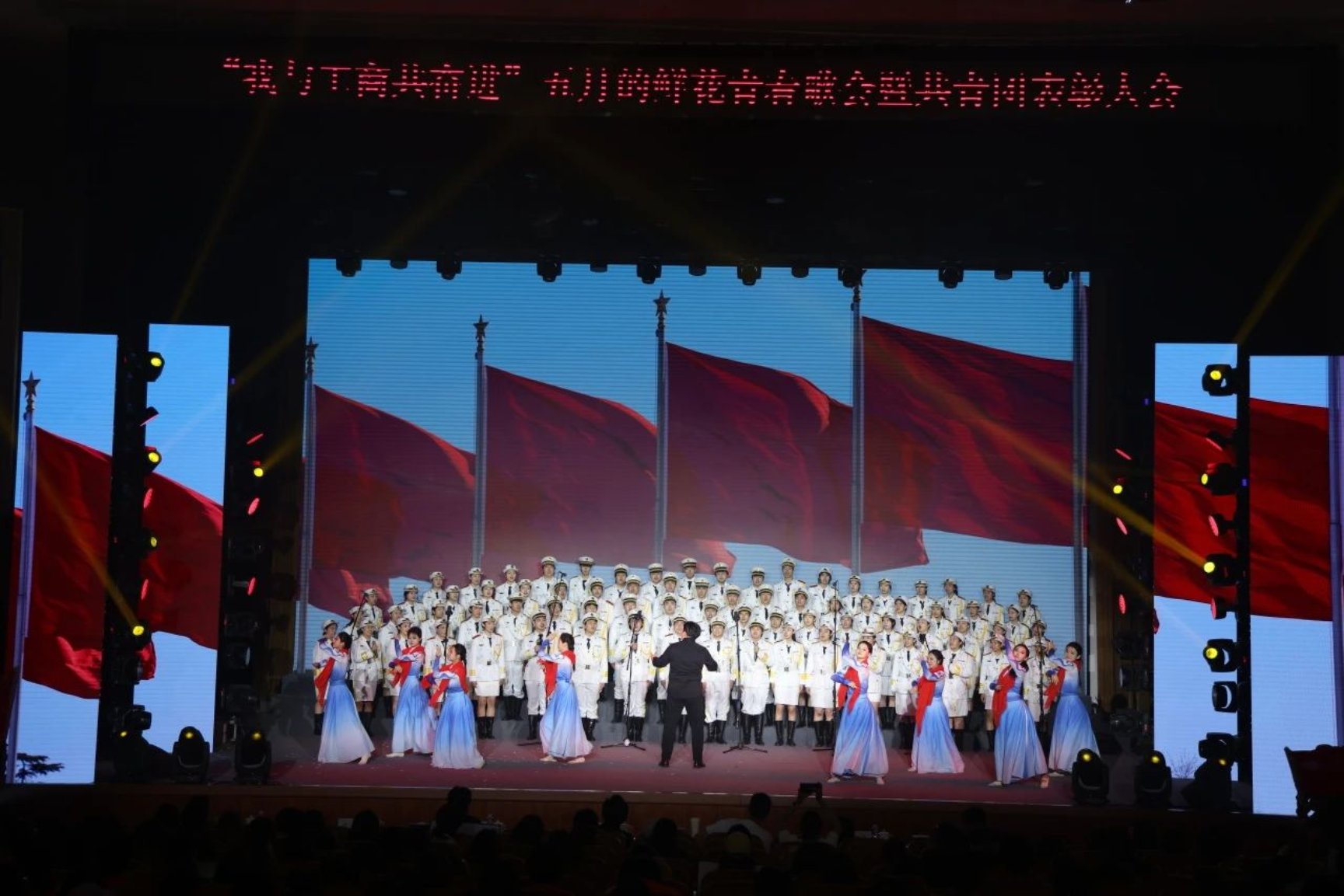食品與健康學(xué)院、設(shè)計(jì)與藝術(shù)學(xué)院演唱的《山河已無(wú)恙》《星辰大海》,歌頌出革命先輩們勇往直前的無(wú)畏精神,也描繪了新時(shí)代青年仰望星空、腳踏實(shí)地的青春答卷。