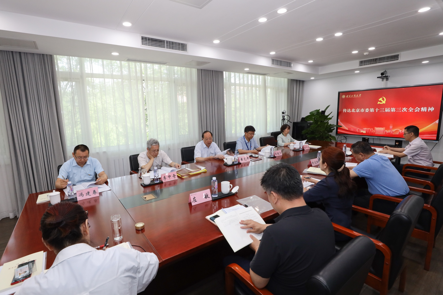 黨委書記黃先開傳達(dá)北京市委第十三屆第三次全會精神,強調(diào)要深入學(xué)習(xí)貫徹習(xí)近平總書記關(guān)于京津冀協(xié)同發(fā)展的重要講話精神,認(rèn)真學(xué)習(xí)貫徹市委十三屆三次全會精神,深刻認(rèn)識推動京津冀協(xié)同發(fā)展給學(xué)校高質(zhì)量發(fā)展的重大意義。一是提高政治站位,把思想和行動統(tǒng)一到習(xí)近平總書記重要講話精神和市委全會部署上來。要深入學(xué)習(xí)領(lǐng)會習(xí)近平總書記在深入推進(jìn)京津冀協(xié)同發(fā)展座談會上的重要講話精神,深刻領(lǐng)會把握京津冀協(xié)同發(fā)展的新形勢新目標(biāo)新要求,聚焦疏解非首都功能、推動“新兩翼”建設(shè),把全會精神轉(zhuǎn)化為推動學(xué)校高質(zhì)量發(fā)展的思路舉措和具體行動。二是強化擔(dān)當(dāng)作為,貫徹落實《中共北京市委關(guān)于貫徹落實習(xí)近平總書記在深入推進(jìn)京津冀協(xié)同發(fā)展座談會上重要講話精神的意見》。要更加主動服務(wù)和融入京津冀協(xié)同發(fā)展大局,主動對標(biāo)對表任務(wù)清單,貫徹落實疏解非首都功能、市屬高校新校區(qū)規(guī)劃建設(shè),加強京津冀高校聯(lián)盟建設(shè),深化師資隊伍、學(xué)科專業(yè)建設(shè)及成果轉(zhuǎn)化等教育領(lǐng)域的合作。三是統(tǒng)籌謀劃推動,持續(xù)深化對習(xí)近平總書記對北京一系列重要講話和重要指示批示精神的學(xué)習(xí)貫徹。作為首都重點建設(shè)的高水平研究型大學(xué),要進(jìn)一步主動融入服務(wù)新時代首都發(fā)展大局,把學(xué)校發(fā)展放到京津冀協(xié)同發(fā)展中來考量,處理好“橋與船”、“失與得”、“眼前與長遠(yuǎn)”之間的關(guān)系,自覺從首都戰(zhàn)略要求出發(fā)來謀劃和推動學(xué)校高質(zhì)量內(nèi)涵式發(fā)展,在推動京津冀協(xié)同發(fā)展的進(jìn)程中更加奮發(fā)有為,努力開創(chuàng)服務(wù)新時代首都發(fā)展新局面。
