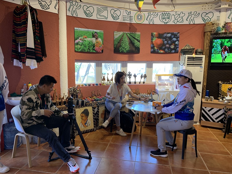 來自中國國際電視臺(CGTN)的記者對服務于世界園藝展示區的我校經濟學院金融專業馬靈清同學進行了采訪,深入了解我校志愿者在世園會的服務工作情況。馬靈清在采訪的全程用熟練的英語回答著記者的問題,向記者詳細介紹了志愿者們的工作情況,并表示在這舉國歡慶的國慶假期中,接待來自全國各地甚至世界各國的游客,以溫暖的微笑和優質的服務為世園會的舉辦獻上自己的一份力量是十分有成就感的一件事。