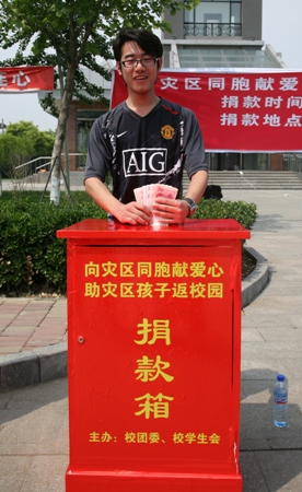 記者在現(xiàn)場隨機采訪了很多捐款的同學(xué)。同學(xué)們都表示,這幾天一直通過網(wǎng)絡(luò)、電視新聞、手機報、收音機等媒介時時刻刻關(guān)注著災(zāi)區(qū)人民的情況,工商063班的徐堯舜說:“得知地震發(fā)生后,大家都比較震驚,紛紛給四川的朋友打電話表示 問 候,這幾天一直在看新聞,希望災(zāi)區(qū)的人民一切都好”。其他同學(xué)也紛紛表示“四川能挺住,中國沒問題”、“每一次看新聞,心里酸酸的,希望那里的災(zāi)民早一點重建家園”。除了捐現(xiàn)金以外,很多同學(xué)這幾天一直拿著手機發(fā)著同一條短信,那就是發(fā)送1或2到1069999301,為災(zāi)區(qū)捐上一元錢,那里的人民就有多了一份希望。
