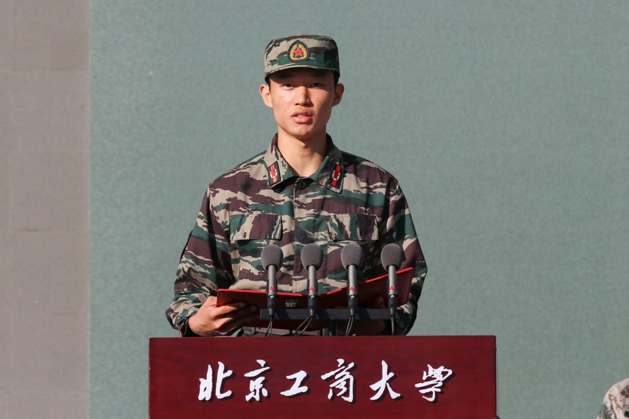 計算機與人工智能學院三營9連2班朱梓綱代表參訓學員發言。他表示,要實現中華民族偉大復興的中國夢,就必須有強大的國防。開展本科生軍訓,就是要讓我們掌握基礎軍事知識技能,增強國防觀念。他代表全體2024級新生保證,將聽從指揮,服從命令;傳承張思德精神,時刻牢記全心全意為人民服務宗旨;磨練意志,以高標準嚴格要求自己,注意安全,做到不驕不躁,不氣不餒;熱愛集體,團結一致,有集體榮譽感;學以致用,將軍訓所學到的優秀品質與作風延續到以后的學習生活中。