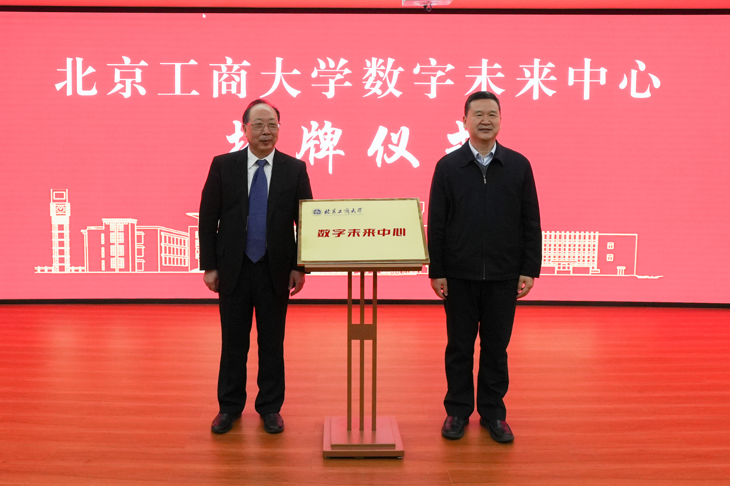 武世興與黃先開共同為北京工商大學數字未來中心揭牌。