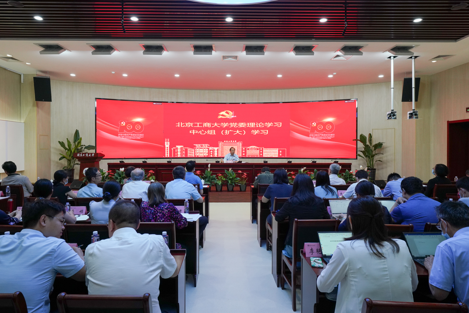 黃先開書記從百年黨史中高等教育的初心和使命、北京工商大學的時代使命兩個方面,全面回顧總結了百年來中國共產黨創辦和領導高等教育取得的偉大成就和寶貴經驗。他指出,回顧黨的歷史,中國共產黨與高等教育有著深遠的歷史淵源,高等院校不僅是在中國傳播馬克思主義的先鋒和橋梁,而且為我黨培養了領導和推動革命、建設的大批優秀人才。他簡要梳理了我黨從參與創辦上海大學、黃埔軍校,到獨立創辦中央紅軍大學、陜北公學,以及建立延安自然科學院,體現出自成立時起就高度重視高等教育和人才培養,總結中國共產黨創辦和領導高等教育的百年實踐歷程可以分為四個階段:建黨初期到新中國成立前艱難起步、社會主義改造和建設初期曲折探索、改革開放后加快發展和黨的十八大以來開啟高質量發展。這些學校始終貫徹黨的教育方針,在辦學理念、模式和方法上進行了獨立探索,形成了中國共產黨獨立領導的,以馬列主義、毛澤東思想為指導,采取“思政課+專業課”的課程結構,貫徹德育為先、學以致用的教學方法,開創了教學、科研、生產“三位一體”的高等教育人才培養模式,積累了中國共產黨興辦高等教育的寶貴經驗,歸結起來就是“為黨育人、為國育才。”