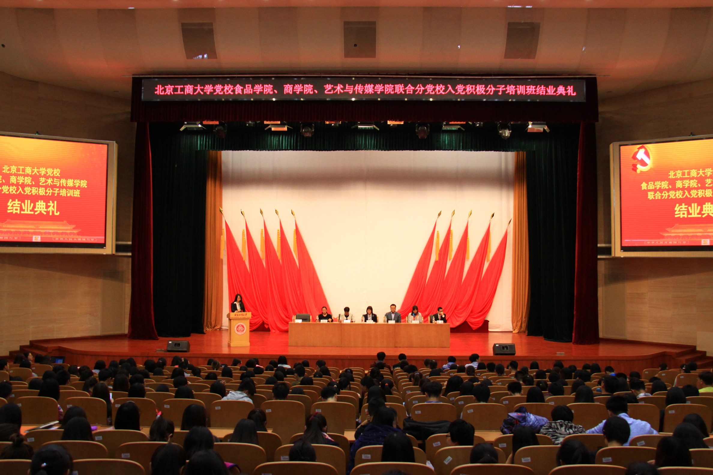 4月20日,食品學(xué)院、商學(xué)院、藝術(shù)與傳媒學(xué)院聯(lián)合分黨校結(jié)業(yè)典禮在良鄉(xiāng)校區(qū)舉行。商學(xué)院黨委書記歐陽愛平教授、食品學(xué)院黨委副書記胡燕霞、商學(xué)院黨委副書記樊江濤、藝術(shù)與傳媒學(xué)院黨委副書記劉晶以及相關(guān)學(xué)院輔導(dǎo)員和500余名學(xué)員參加了此次典禮。