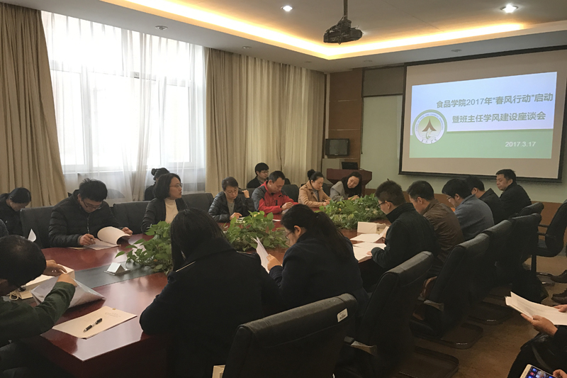 為加強(qiáng)學(xué)風(fēng)建設(shè),營造良好學(xué)習(xí)氣氛,3月17日,食品學(xué)院在阜成路校區(qū)召開2017年春風(fēng)行動(dòng)啟動(dòng)暨班主任學(xué)風(fēng)建設(shè)座談會(huì)。學(xué)院黨委書記何猛出席。會(huì)議由學(xué)院黨委副書記胡燕霞主持,學(xué)院全體班主任、輔導(dǎo)員參加了會(huì)議。