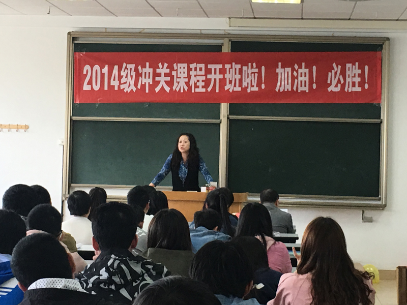 為實現學校十三五規劃的“369” 目標,助力14級學子們最后一次四級沖關成功, 我校外國語學院、學生處、教務處等多部門高度重視,全校負責學生工作的學院書記通力協作、全力以赴動員學生,經過為期一個多月的精心籌備, 4月11日,學校14級四級診斷課堂正式開班了!