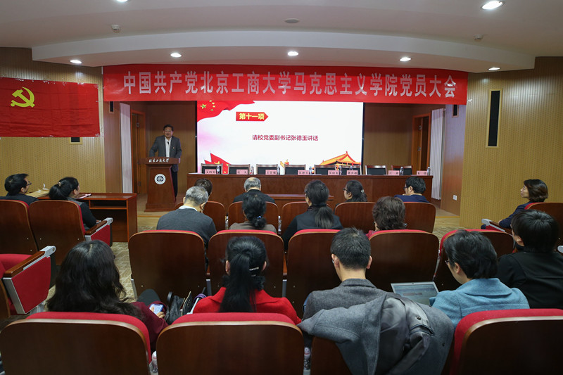 11月20日上午,中國共產(chǎn)黨北京工商大學馬克思主義學院黨員大會在阜成路校區(qū)舉行,學院全體黨員和預備黨員參加大會。學校黨委副書記張德玉出席會議并講話。學校黨委組織部部長張國龍、馬克思主義學院全體黨員參加大會。