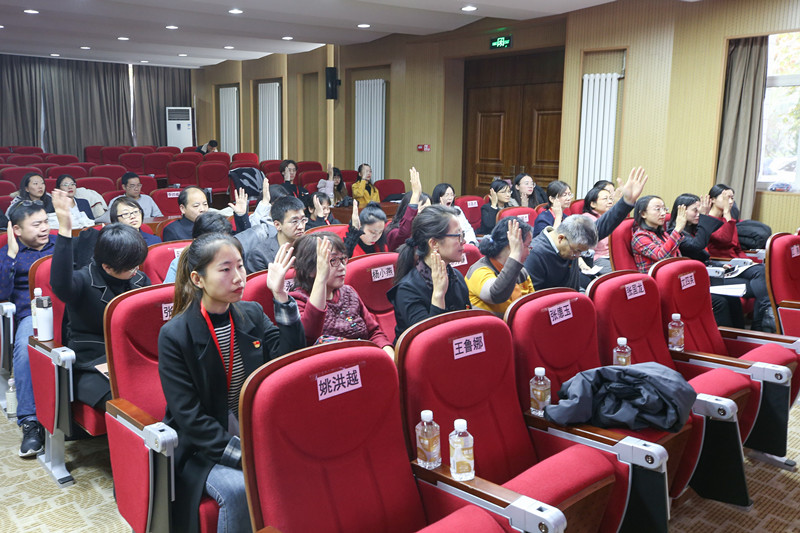 馬克思主義學院黨總支書記王魯娜代表上一屆黨總支作了題為《不忘初心 牢記使命 開創(chuàng)馬克思主義學院建設新局面》的工作報告。報告在充分調研的基礎上認真回顧了馬克思主義學院黨總支過去近三年來的工作和成績,對學院黨建工作、課程建設、學科建設與研究生培養(yǎng)、育人工作以及理論服務等方面進行了全面的總結,指出了存在的問題和不足,明確了馬克思主義學院今后的改革發(fā)展目標和努力方向。王魯娜還代表上一屆黨總支作了黨費收繳、使用和管理情況的報告。大會審議并通過了這兩個報告。