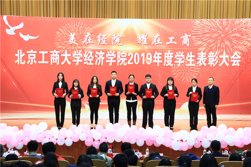 為表彰先進,樹立榜樣,12月25日,“美在經院 耀在工商”經濟學院2019年度學生表彰大會在良鄉校區隆重召開。學生處處長呂良、經濟學院黨委書記呂素香、黨委副書記杜亞輝,副院長寧威,院長助理于海龍,各系主任,專業老師,輔導員,19級本科生和研究生以及獲獎代表800余人共聚一堂,歷數2019年取得的豐碩成果,見證學生們的努力、經院的奮進、工商的榮耀。大會由學院團委書記單紫薇主持。