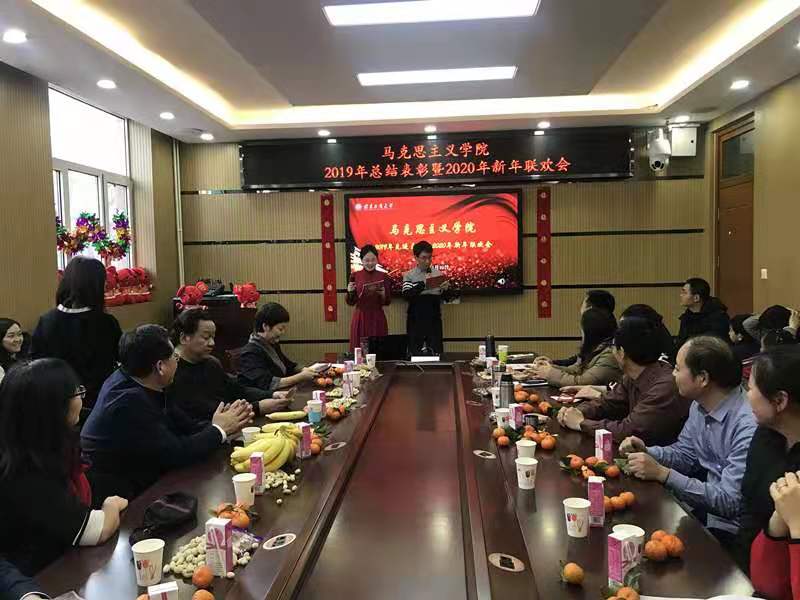 新年伊始,萬象更新。1月10日,馬克思主義學(xué)院在阜成路校區(qū)舉行2019年工作總結(jié)表彰暨2020年分工會(huì)新年聯(lián)歡會(huì)。學(xué)校黨委副書記張德玉,副校長鄭文紅,馬克思主義學(xué)院院長、黨總支書記王魯娜,學(xué)院常務(wù)副書記文四英、副院長姚洪越以及學(xué)院全體教職工歡聚一堂,暢敘馬院情誼,共度新年。會(huì)議由學(xué)院教師張印舉、姜茹茹主持。