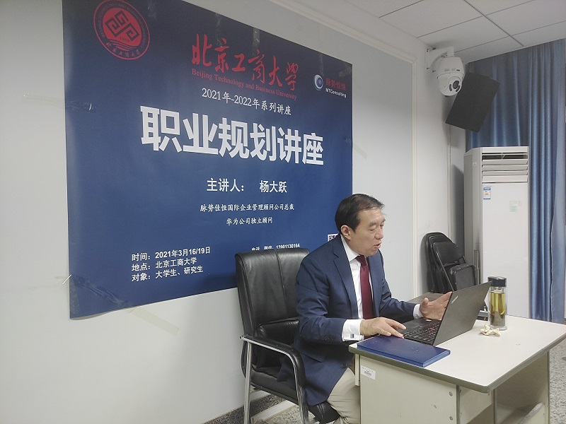 兩場講座中,楊大躍結合自身在北京工商大學學習、工作和生活經歷,和在摩托羅拉、中興、華為等世界頂尖企業的任職經歷,列舉了非常豐富的職業生涯實戰案例,讓同學們受益匪淺。講座后,不少同學在問答環節積極交流提問。楊大躍認真解答同學們的問題,為同學們提供詳細的解決方法。