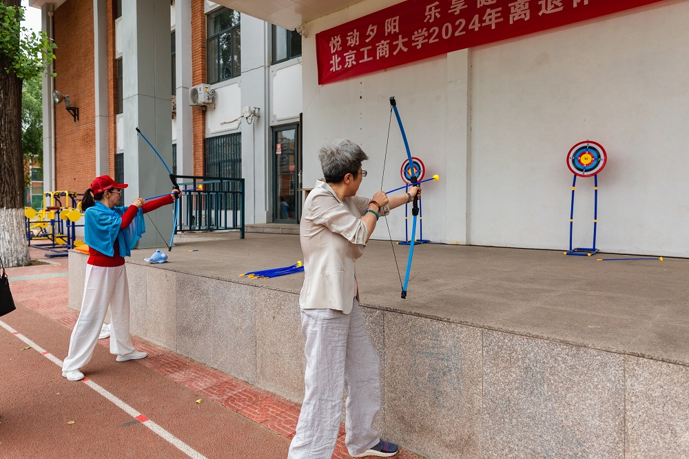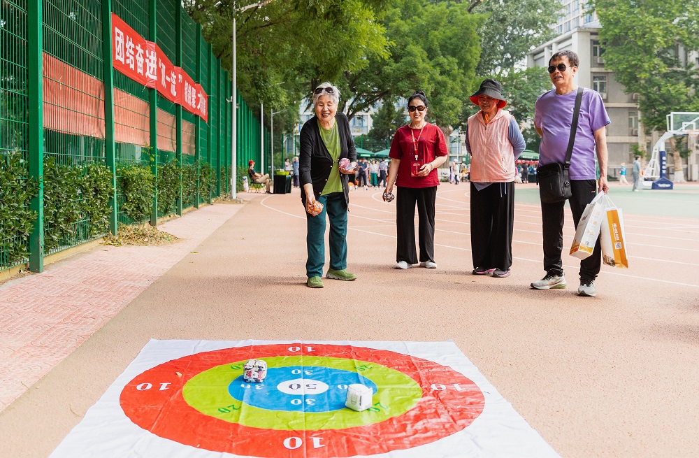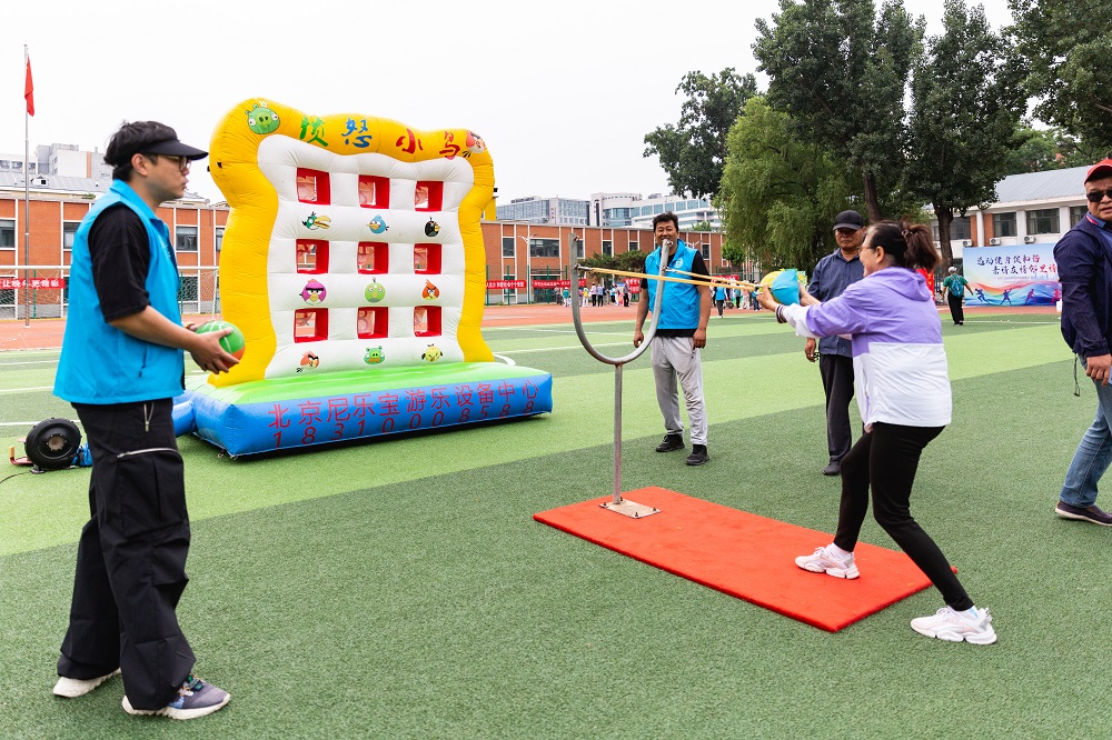 本次活動的主體項目是精心設計的趣味運動,讓每位參與者都能在輕松愉快的氛圍中享受運動的樂趣。“筷子夾球”項目需要在最短的時間內用筷子夾出乒乓球再放入指定位置,鍛煉老年人的手指靈活度。“足球飛鏢”“沙包擲準”“冰壺”“動感單車”鍛煉老年人的四肢精準度和力量。“投箭入壺”“吸盤射箭”、端午節民間傳統游戲“射五毒”“捶丸”既體現了傳統文化,又結合了現代技術,為健康運動增添了科技感。“木球攻門”“套圈尋寶”既考驗了策略思考,又增加了運動的趣味性。模仿游戲角色用彈弓將小鳥射向小豬的項目“憤怒的小鳥”充滿童趣,吸人眼球,既考驗參與者的力度控制,又激發了競技激情。“抓娃娃”讓老同志回到了童年時光,感受到滿滿的童趣。豐富的趣味運動項目寓意“點亮北京”,老同志們在參與中提高了健康理念,增添了生活樂趣,增強了為首都增光添彩的良好心愿。