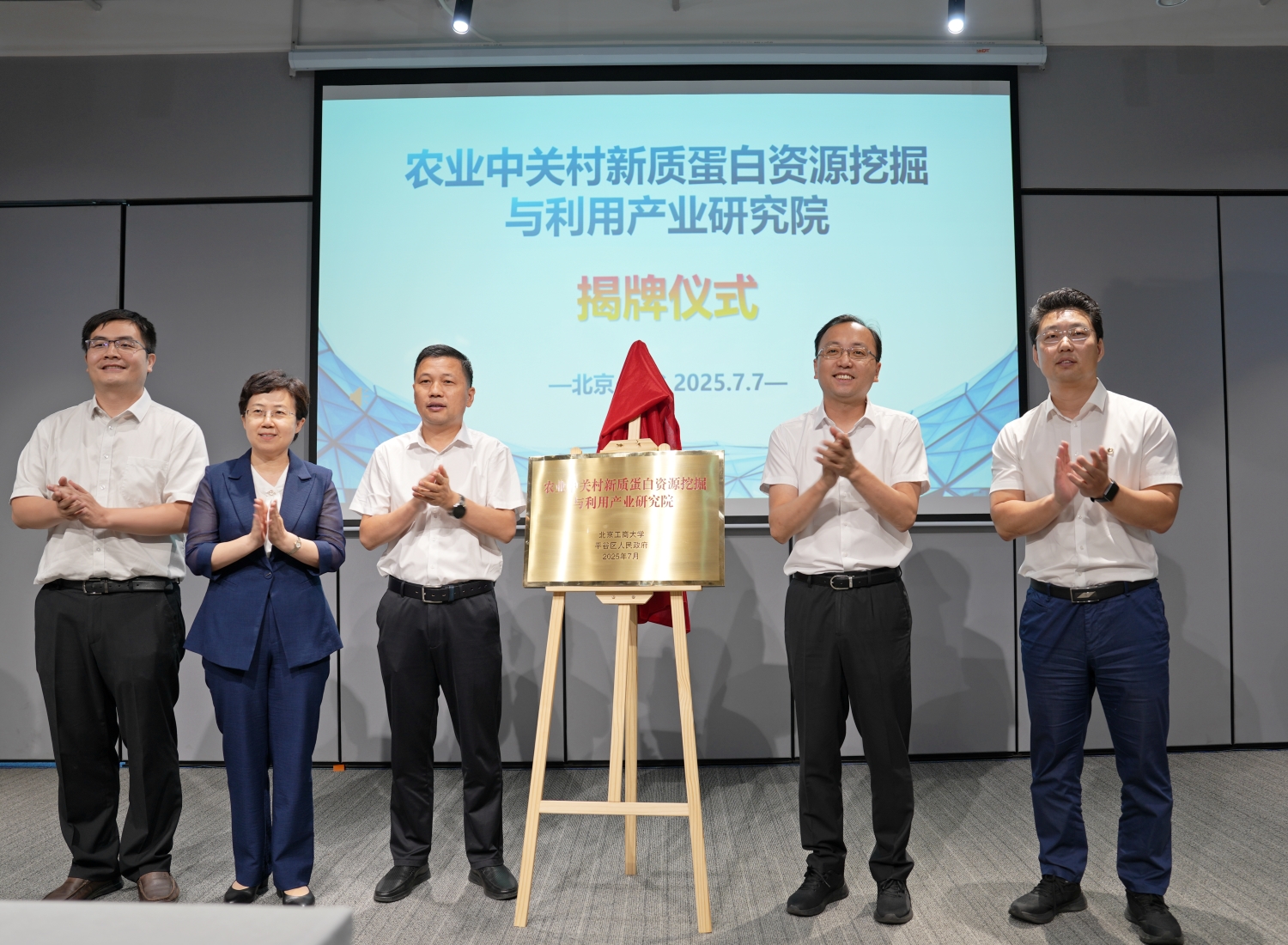 7月7日上午,新質(zhì)蛋白資源挖掘與利用產(chǎn)業(yè)研究院揭牌儀式在平谷區(qū)中關村(平谷)中小企業(yè)服務中心舉行。平谷區(qū)委副書記、區(qū)長狄濤,副區(qū)長彭石,學校黨委常委、副校長寇紅江等出席儀式。市科委、平谷區(qū)科信局等相關部門負責人,學校食品與健康學院負責人,相關科研院所專家及企業(yè)代表參加。