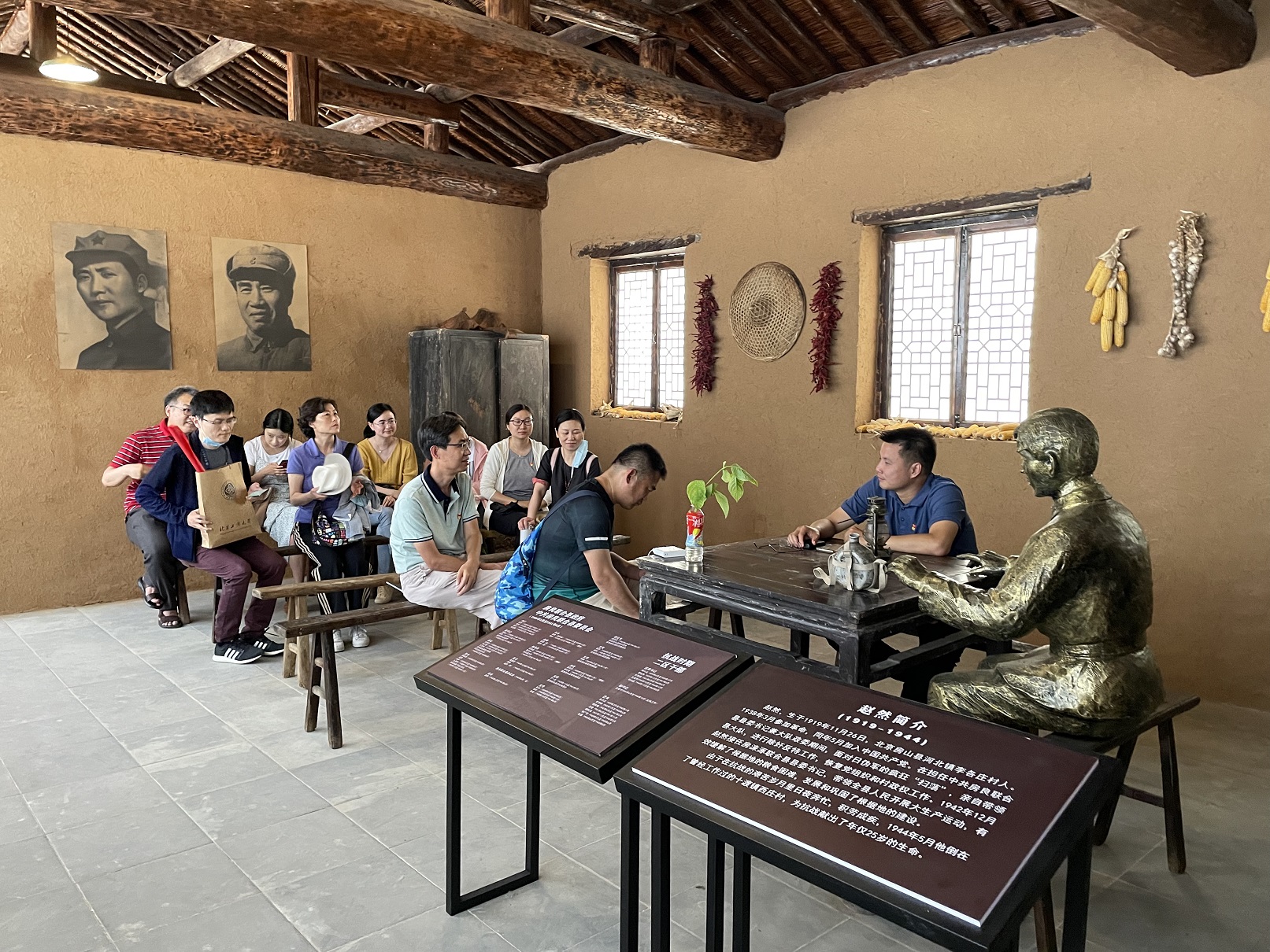 最后一行人來到了遠近聞名的“抗日模范村”馬安。“馬安讓日本鬼子燒過三回,卻沒出現一個叛徒!”一幅巨大的“老帽山六壯士”彩繪前,馬安村第一書記詹小冷為師生講述抗戰故事。1941年秋,房淶涿聯合縣政府授予這里“抗日模范村”稱號。1951年夏,中央慰問團又將毛主席親筆書寫的“發揚革命傳統,爭取更大光榮”錦旗授予馬安。這兩面紅旗,至今依然被妥善保存著。老師們參觀了房良縣委和縣政府駐地、南嶺阻擊戰等10余處抗戰遺址,通過情景教學,重溫當年抗日將士英勇奮斗,不怕犧牲的精神也激發了黨員老師們的斗志。