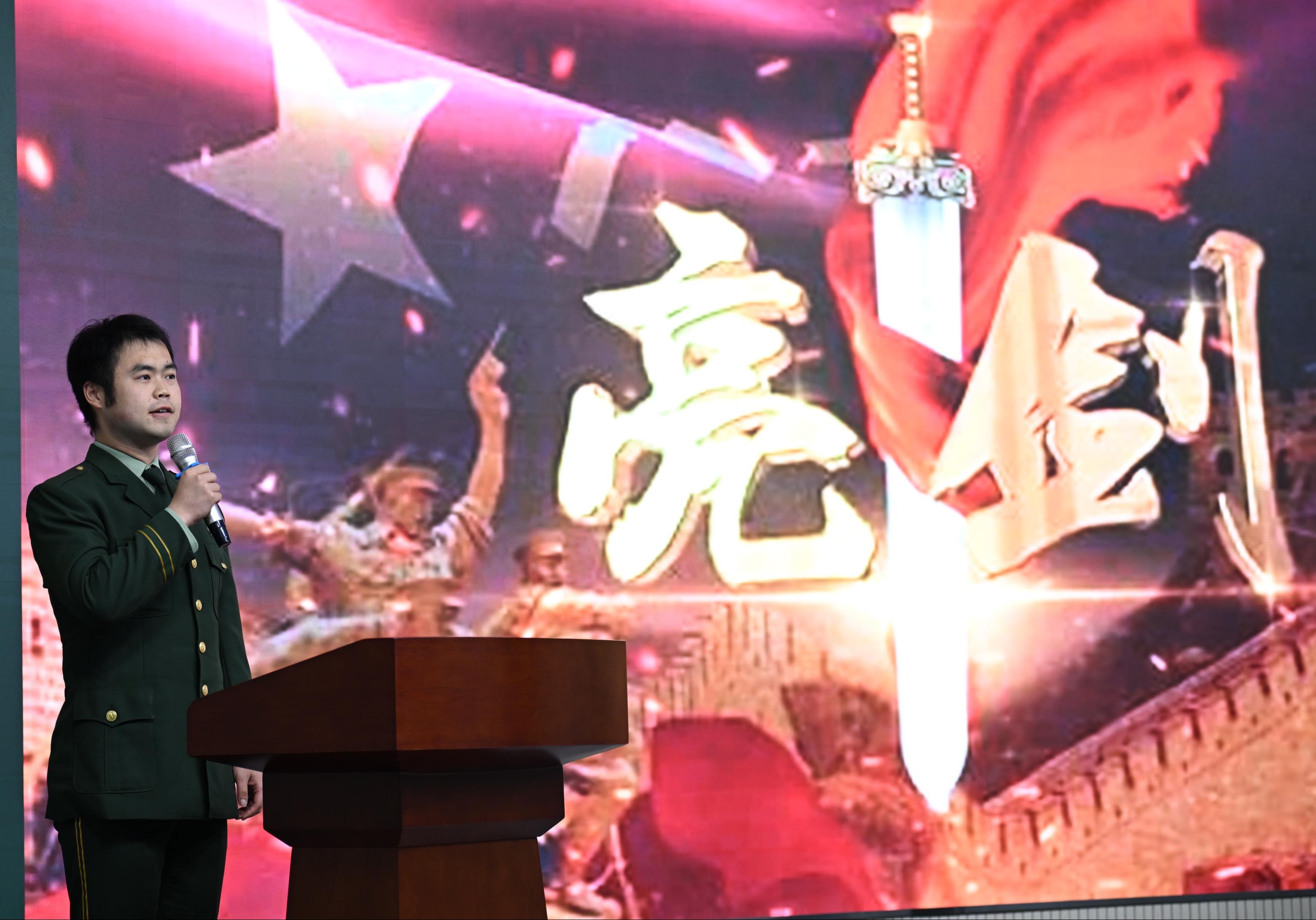 在“愛(ài)國(guó)國(guó)防”主題演講比賽環(huán)節(jié),退伍大學(xué)生郝樂(lè)之、李學(xué)慧和民兵連隊(duì)員趙馨圍繞“抗日英模故事”主題,分別為現(xiàn)場(chǎng)師生講述了楊靖宇、趙一曼和陳若克三位英模烈士的感人故事,號(hào)召青年學(xué)子傳承抗戰(zhàn)精神,向英烈學(xué)習(xí),矢志奮斗;退伍大學(xué)生王媛媛、民兵連隊(duì)員謝雨含和黃鍇程選擇“抗日歌曲傳頌”主題,帶領(lǐng)大家重溫《黃河大合唱》《義勇軍進(jìn)行曲》《松花江上》三首紅色歌曲的歷史背景和創(chuàng)作歷程,彰顯了中華民族不畏強(qiáng)敵、不懼風(fēng)險(xiǎn)、敢于斗爭(zhēng)、勇于勝利的風(fēng)骨和品質(zhì);退伍大學(xué)生劉華鑫、曹振方、趙耀祖和姜良正分別講述了“我的軍旅生涯”,他們用鮮活的軍旅故事,為大家?guī)?lái)了他們從大學(xué)生成長(zhǎng)為中國(guó)軍人的蛻變歷程,他們以自己的實(shí)際行動(dòng)踐行了“清澈的愛(ài),只為中國(guó)”的青春誓言。