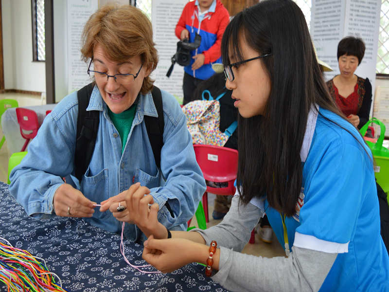 外語志愿者分為六組,全程組織參加采訪攝制組、農耕體驗區、繪畫手工區、親子尋寶區、特色市集區和主題互動區的各類工作。攝影組志愿者與十余家媒體記者為攝像師、記者和外賓采訪提供語言傳譯服務;農耕體驗區的志愿者用英語向外國家庭講解中國傳統農耕文化,帶領指導他們體驗中國農耕樂趣;繪畫手工區的愛心志愿者幫助中外小朋友裝飾鳥巢、體驗民俗手工,他們細致耐心的服務得到小朋友和家長們的一致好評;尋寶區的志愿者在桃樹林中帶領外國小朋友們藏寶尋寶,尋找驚喜中體驗歡樂;特產市集區的志愿者協助房山各個村鎮的巧手工藝者們與外賓溝通,介紹各種特色產品;主題互動區的志愿者則用英語介紹國際日和中國二十四節氣等文化知識,使外賓產生濃厚興趣,不時駐足傾聽。英語121班的王海洋說:“很感謝學校和學院給我們提供平臺參加國際日志愿者服務工作,很多外國家庭都對中國文化很感興趣,能夠為他們多介紹一些中國文化知識,我很有成就感。”