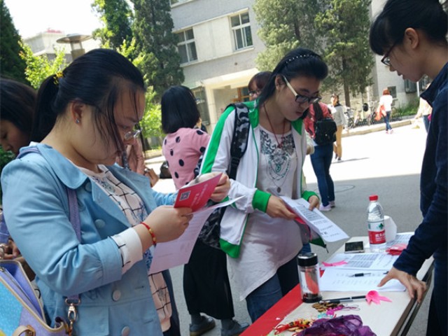 5月12日、13日,校研會青志協舉辦了以“粉紅絲帶·五月關愛”為主題的系列活動。活動共分為乳房健康知識宣傳和健康義診兩部分。 在活動宣傳中,來咨詢的同學絡繹不絕,工作人員一邊分發宣傳手冊,一邊指導報名參加義診活動。同學們很積極,紛紛前來報名咨詢,大家的熱情還吸引了來自哈薩克斯坦和非洲地區的朋友。宣傳結束后,協會成員還專門為打印店、小賣部、書店的阿姨和樓管阿姨送去了義診邀請。每天都為學業生活忙碌的我們,有機會也不要忘記停下腳步多多關心自己的身體。 義診現場,邀請到了海軍總醫院王海龍主任、李易霞主任和校醫院王彤醫生為我校師生進行女性健康義診。三位醫生很耐心地微笑傾聽并回答了前來看診的每一個同學的問題。醫生們的熱心和真誠令大家感動,在短短的三個小時里就有84位同學前來咨詢問診,同學們對我們本次義診活動相當滿意,并夸贊說很用心很有意義。 本次活動秉著青志協“讓志愿融入生活”的理念宗旨,不僅鼓勵全校師生多多關注身體健康,更是用實際行動展現了奉獻、友愛的志愿者精神,激發了同學們從事公益的熱情和積極性。