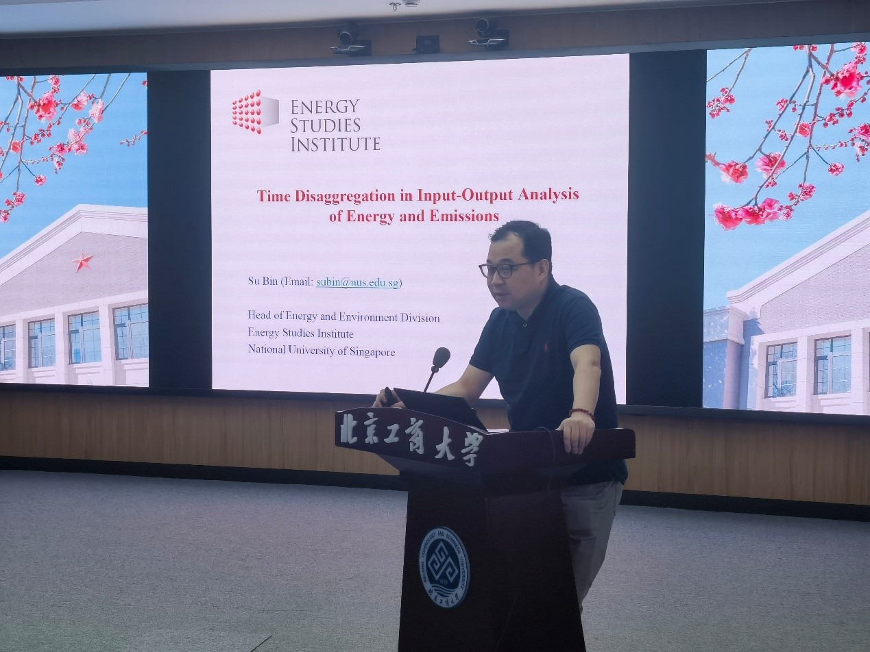 新加坡國立大學高級研究員蘇斌作了題為“Time Disaggregation in Input-Output Analysis of Energy and Emissions”的主題報告。他提出了一種采用月度數據的I-O分析框架,用以揭示隱含能源或排放及其總隱含強度指標隨時間演變的驅動因素。他使用中國的投入產出表和詳細的月度數據進行了實證研究與分析,驗證了該框架的有效性。