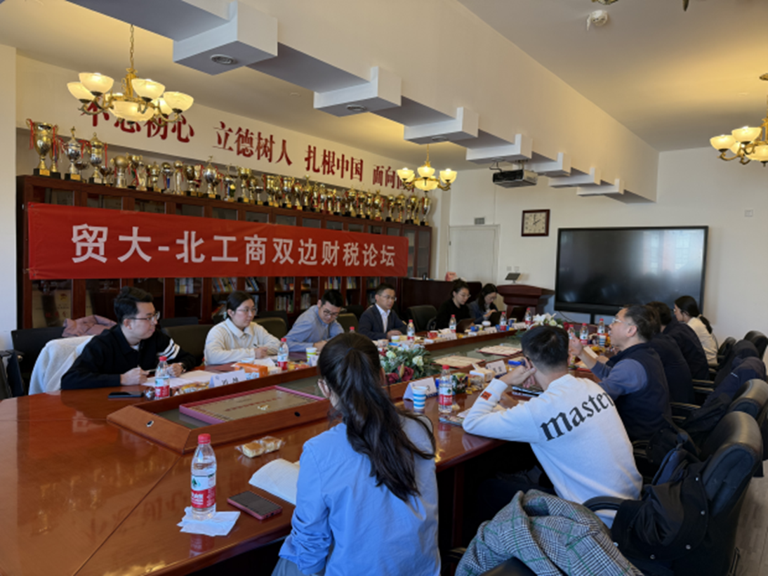 12月7日,“貿大-北工商”雙邊財稅論壇在對外經濟貿易大學舉辦。對外經濟貿易大學教務處處長毛捷教授、國際經濟貿易學院財稅學系周波教授、鄭文平副教授、聶卓老師、彭鷺老師和北京工商大學經濟學院執行院長詹新宇教授、副院長許敬軒,財政系苗珊副教授、管星華老師、田坤老師,金融系張迎新老師、李惠璇老師參加此次論壇交流活動。