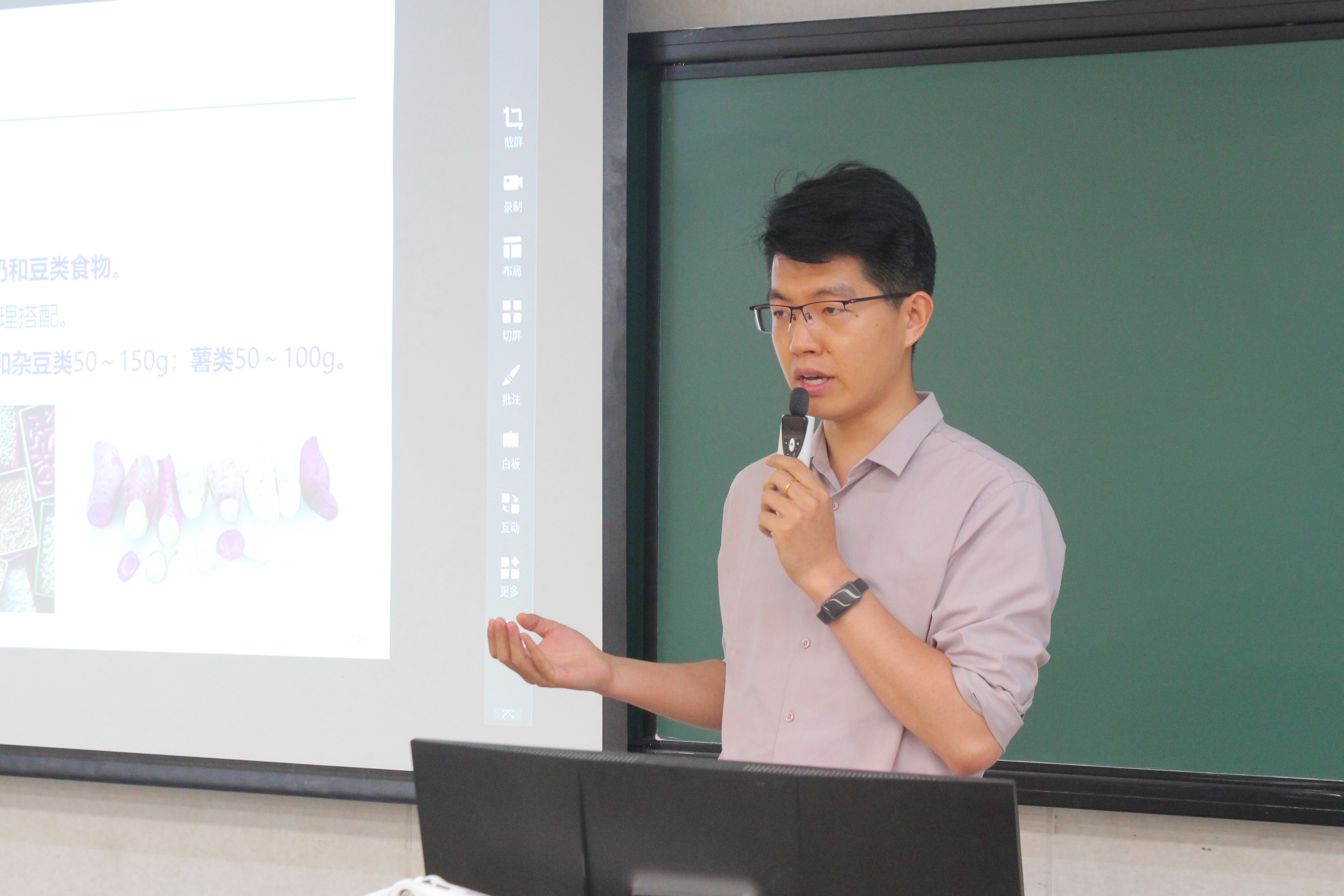 陳鑫圍繞《中國居民膳食指南2022》進行了詳盡解讀,為聽眾提供了一系列切實可行的健康生活指南。逐一闡述了指南中的八大核心準則,從食物多樣性、吃動平衡到合理膳食結構、健康飲食習慣等多個維度,全面覆蓋了日常飲食的方方面面,旨在幫助學生將理論知識轉化為實際行動,促進健康生活方式的養成。