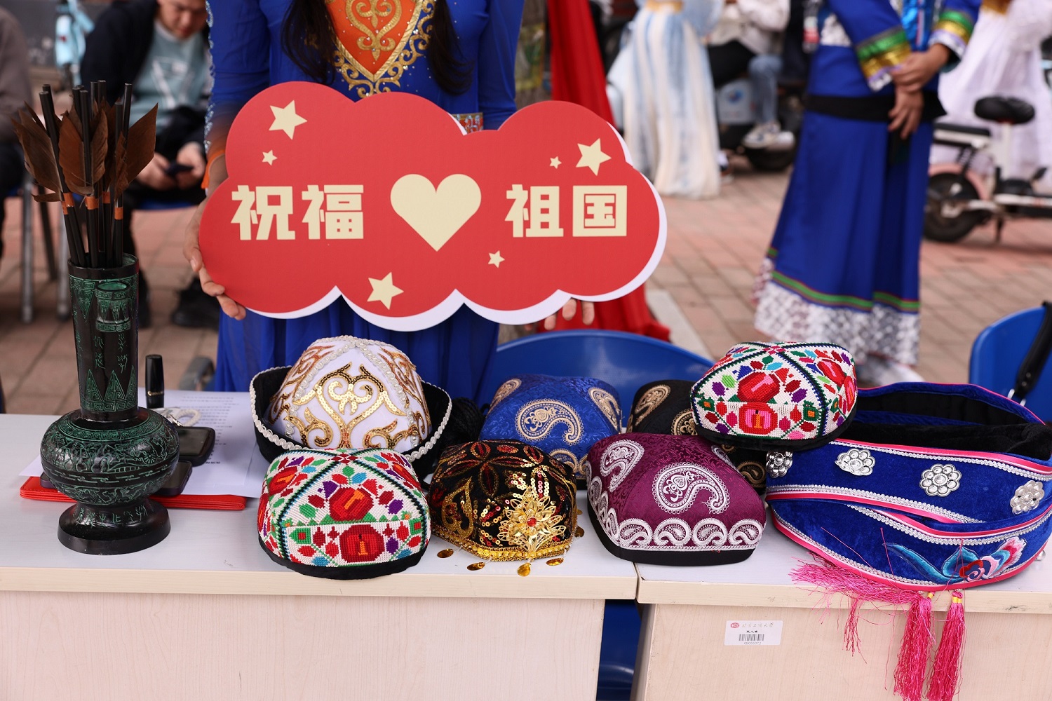 民族文化展覽體驗區,同學們體驗形式多樣的民族特色活動。展品區,同學們試戴精美的民族特色帽子拍照打卡留念。文化區,體驗毛筆書法,藏文書法和剪紙,感受悠久燦爛的中華民族文化。游戲區,同學們在體驗中學習,在交流中交融,編織了北工商一幅幅手足相親的民族團結畫卷。