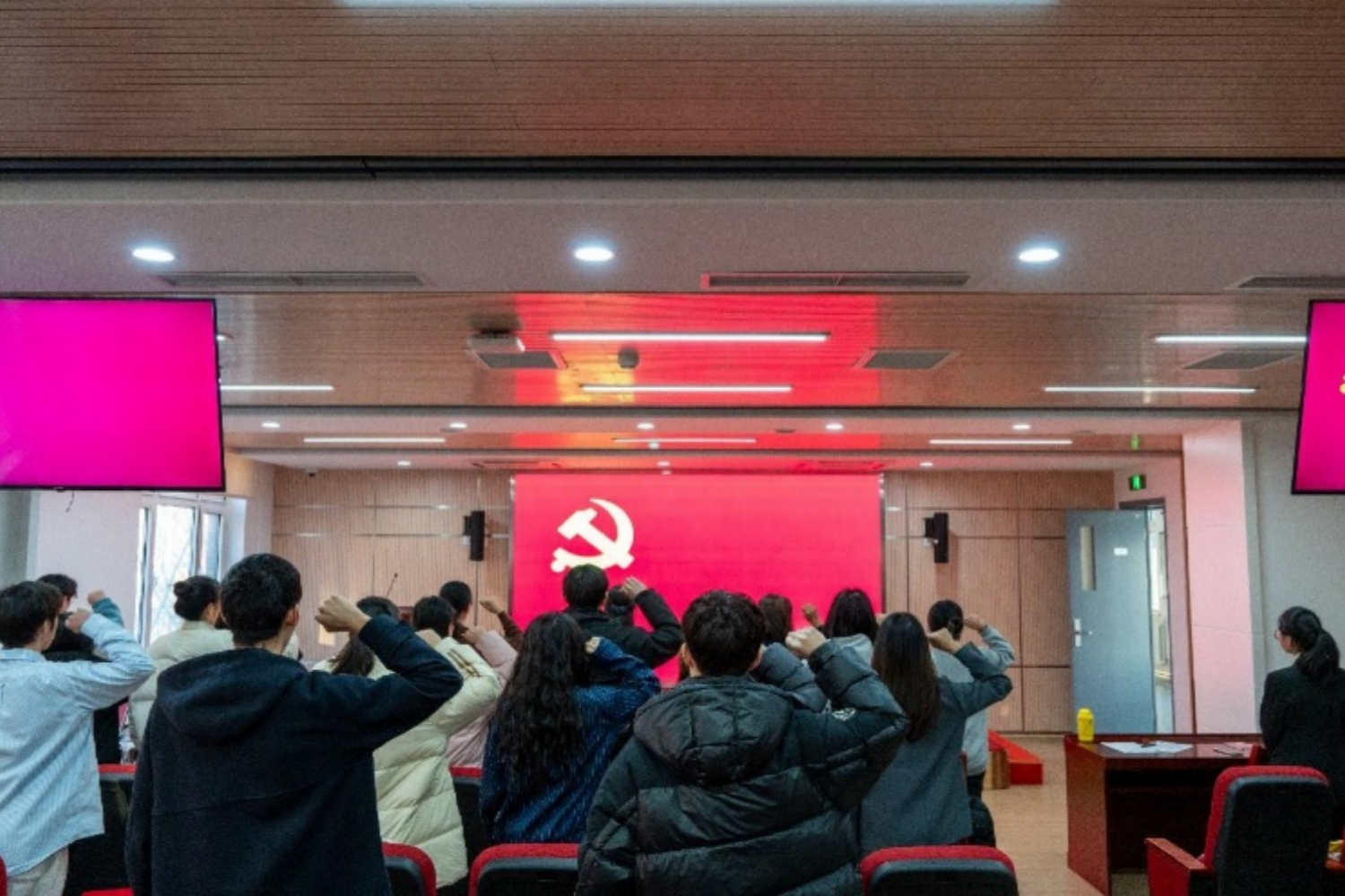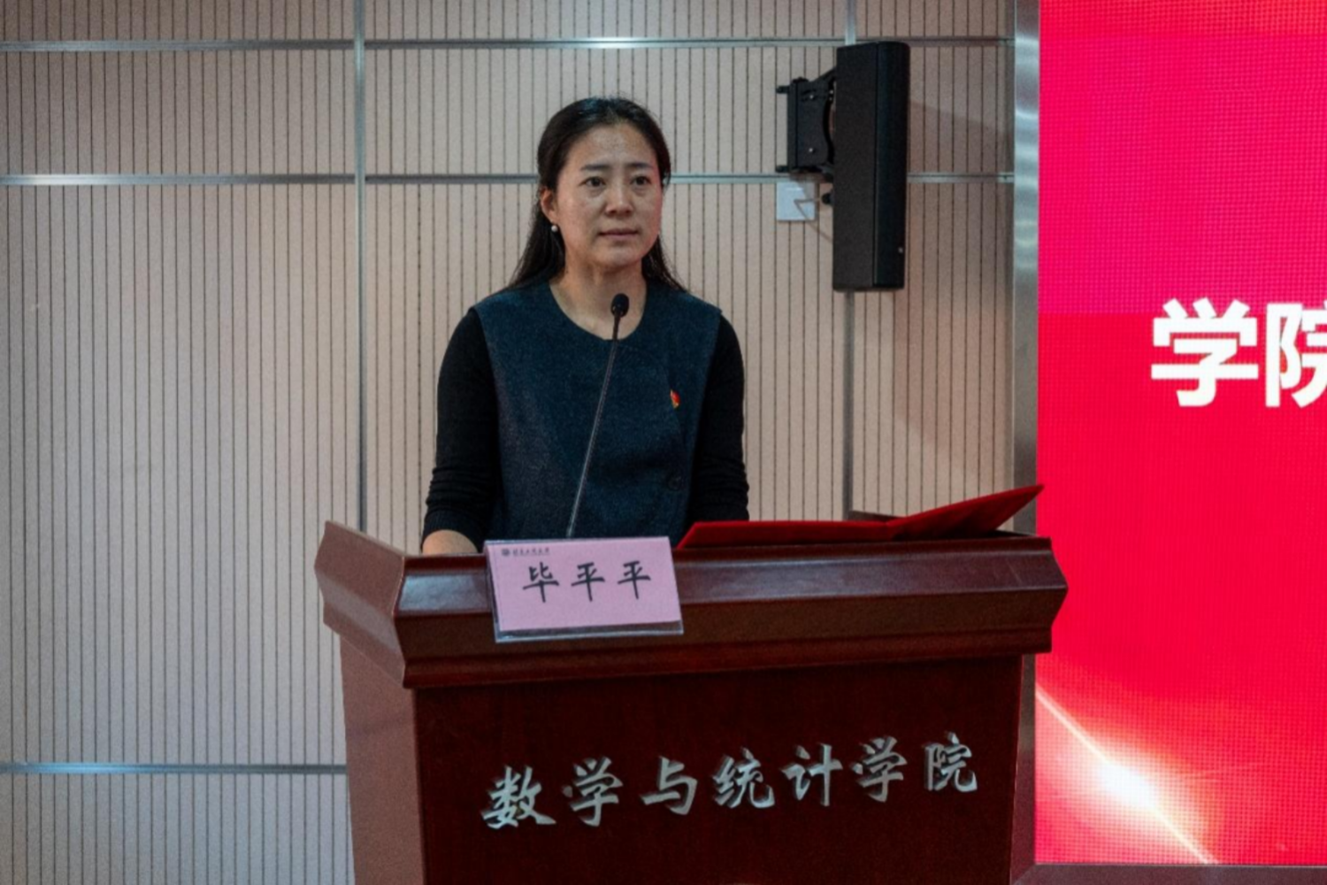 12月20日,數學與統計學院舉行了2024年新發展黨員入黨宣誓暨授牌儀式。學院黨委書記周艷杰、學院黨委副書記畢平平、組織員寇明雯、正式黨員代表和2024年新發展黨員參加了此次活動,儀式由組織員寇明雯主持。
