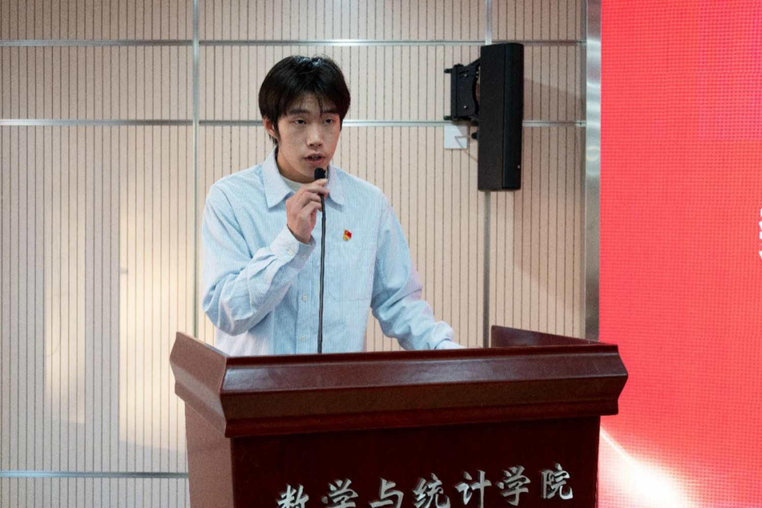 數統研2421班武麟雨作為正式黨員代表發言,她對黨組織的培養表示感謝,她講到,入黨是人生的重要里程碑,它賦予了我們光榮稱號,更賦予了責任與使命。作為新時代學生黨員,要時刻做到“兩個維護”,學好專業知識,保持學習熱情,提升素質,銘記黨員身份,踐行黨的宗旨,服務社會。