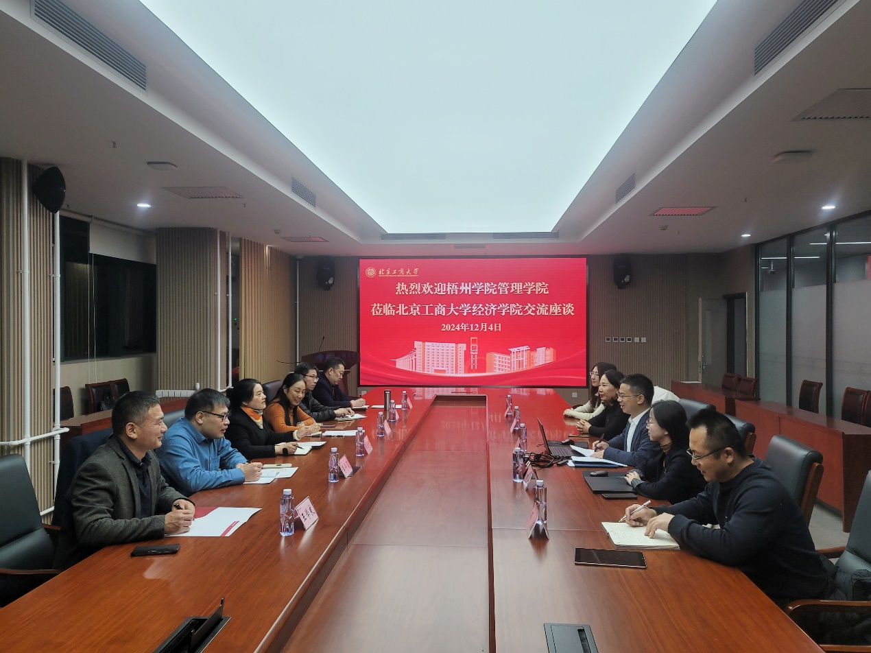 張?zhí)迷聘兄x經(jīng)濟(jì)學(xué)院的熱情接待和精心安排,介紹了梧州管理學(xué)院的發(fā)展歷史、辦學(xué)特色、學(xué)科定位、專(zhuān)業(yè)設(shè)置、師資力量、教學(xué)改革及未來(lái)規(guī)劃等情況,并就激勵(lì)教師科研積極性、提升人才培養(yǎng)質(zhì)量等問(wèn)題,展開(kāi)探討交流。