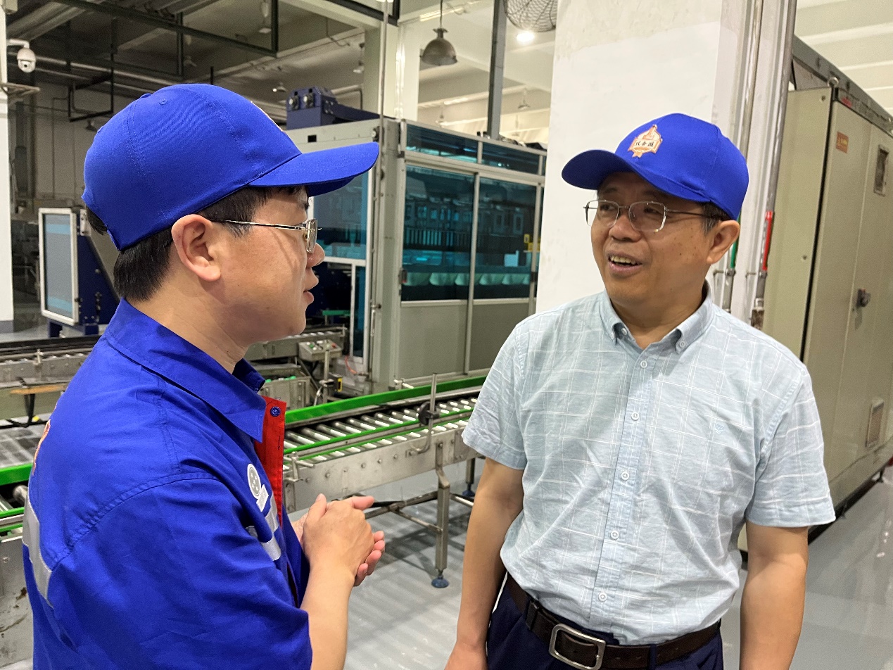 北京雙合盛五星啤酒有限公司副總經理朱兵陪同鄭福平一行對公司的生產實際情況進行調研,詳細介紹了目前公司主流產品的工藝、設備、倉儲、物流、質控、未來用地規劃等方面情況。鄭福平表示,企業規范化管理是產品品質穩定提升的重要保障,并對公司目前的運營管理給予充分肯定。