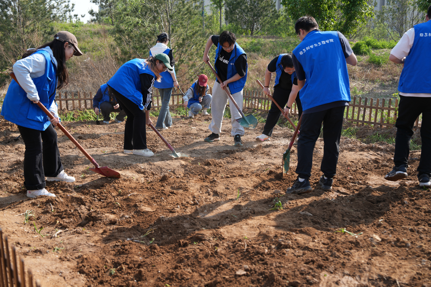 開耕儀式后,在園地實踐老師的帶領下,各學院師生師生分別前往各自園地展開勞作,手持農具翻整土地、澆水覆土,將新一年勞動的種子種在田間,也種在自己的心田。