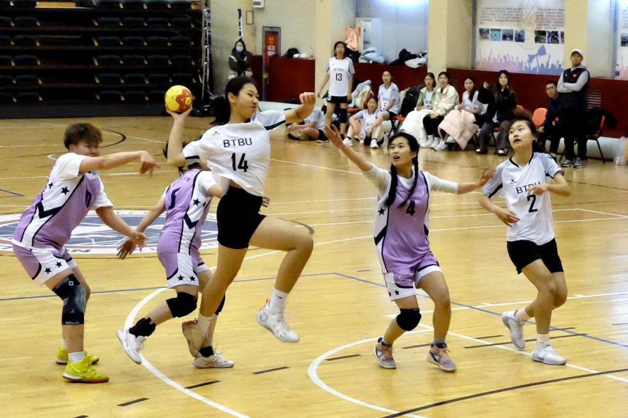女子組同樣精彩紛呈。北京工商大學女子手球隊發揮出色,從北京地質大學(北京)、北京科技大學等眾多強隊中拼得一張進入決賽階段的“入場券”。