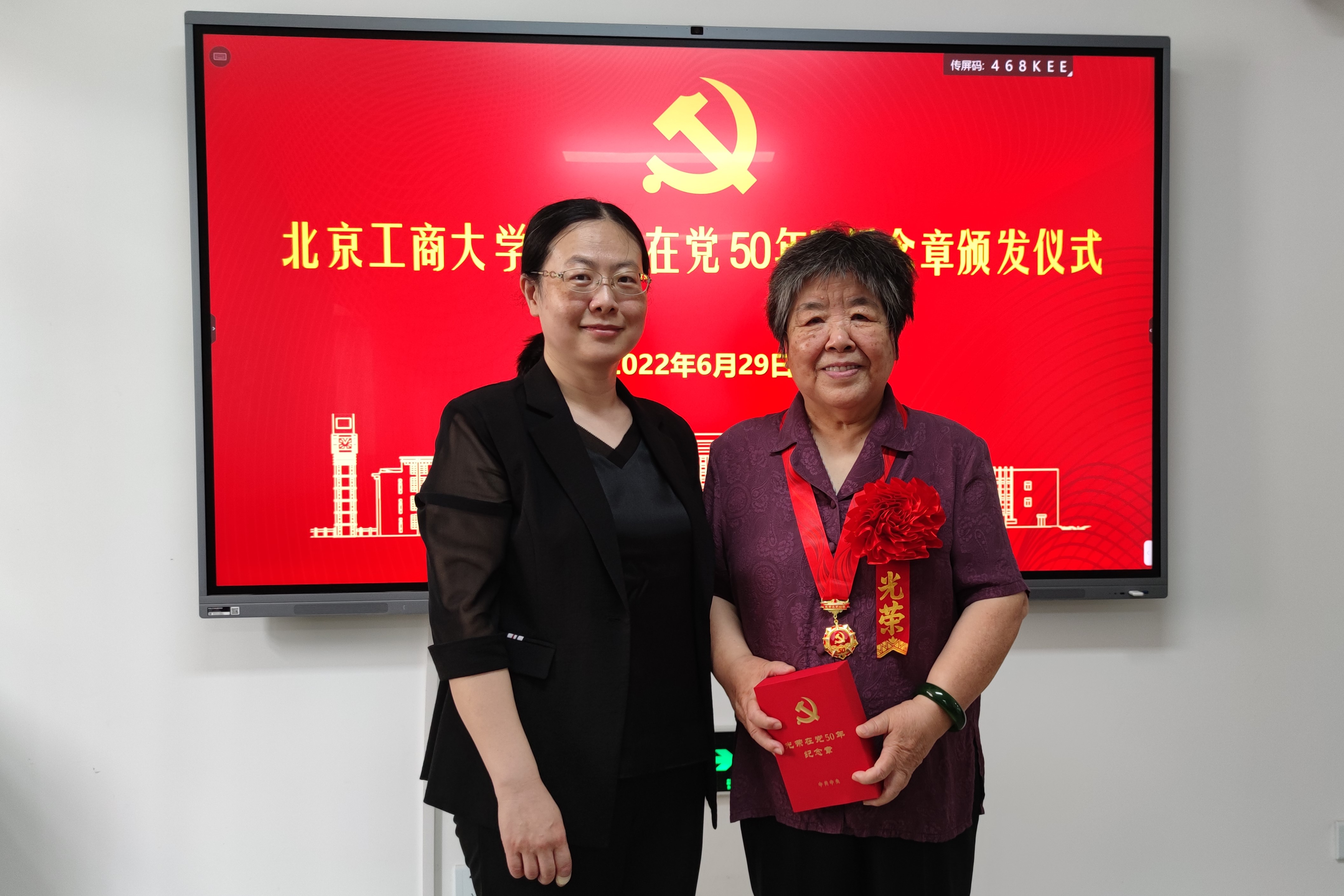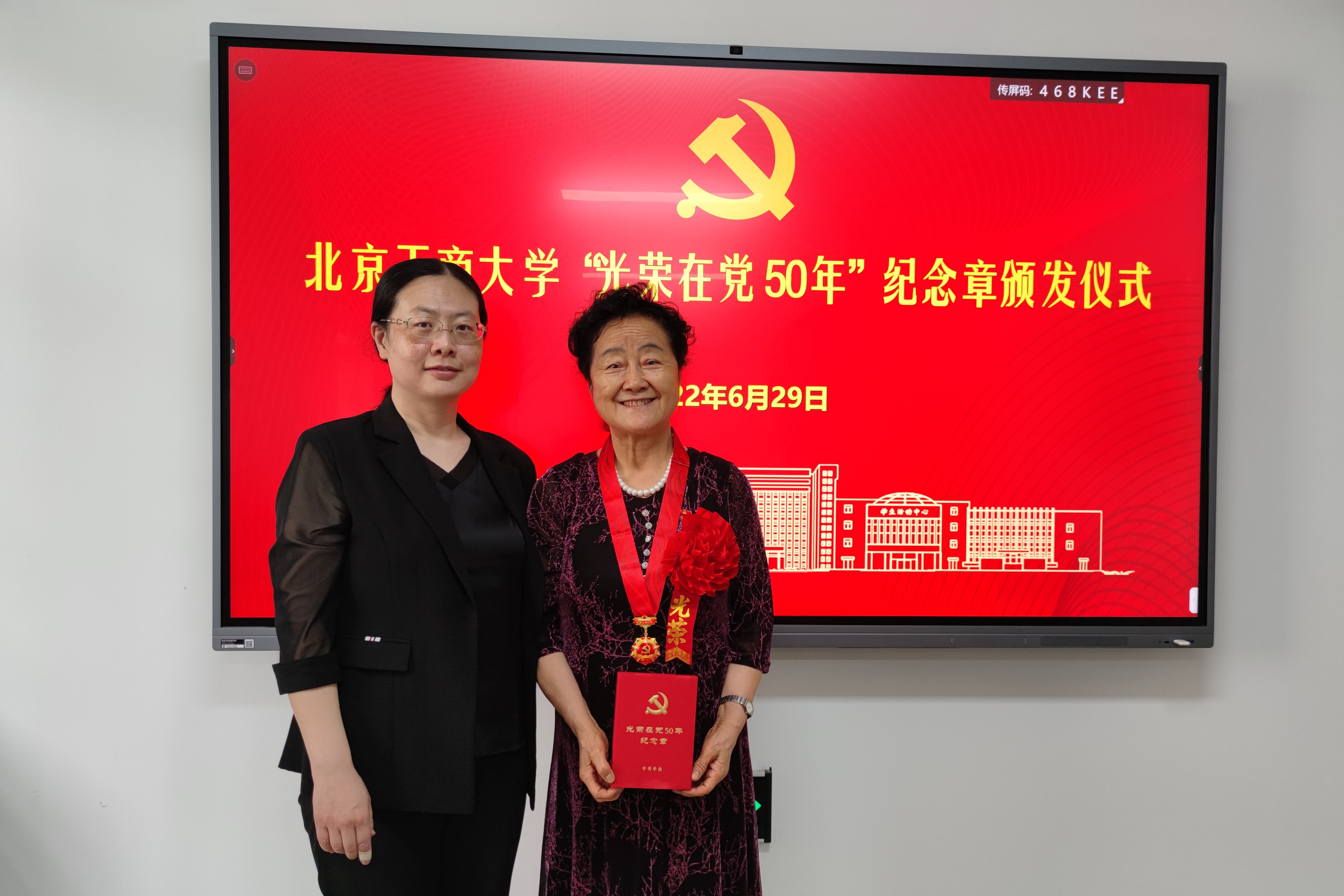 6月29日,學(xué)校“光榮在黨50年”紀(jì)念章頒發(fā)儀式在阜成路校區(qū)西區(qū)老干部活動中心舉行。今年是中國共產(chǎn)黨成立101周年,學(xué)校有11名黨齡達到50周年的老黨員榮獲“光榮在黨50年”紀(jì)念章。“光榮在黨50年”的老黨員代表,離退休黨委書記楊巧明、離退休工作處處長王紅英、副處長褚財寬,離退休黨支部書記代表等參加了儀式。儀式由離退休工作處處長王紅英主持。