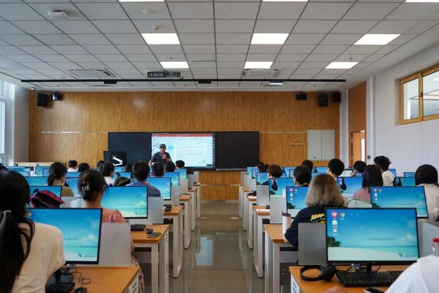 新學期為學生們安排了1997門次本科授課課程,涉及939門課程,共有4174個教學班次,上課學生人數高達86833人次,由1007名教師精心授課。開課第一天,各單位準備充分,后勤保障設施完備,全體任課教師均能提前到崗。課堂上,學生認真聆聽著老師講課,老師們精神抖擻,和藹親切。授課教師親身引導學習,啟發思維,提問、討論,多維度互動并重,學生到課率高,課堂紀律良好,能積極參與課堂活動。