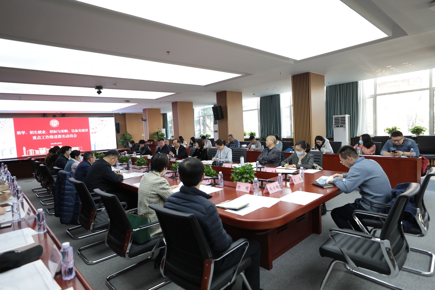 為深入落實學校中層干部(擴大)會精神,全面推動學校2022年度十大重點工作任務走深走實,3月2日至17日,校領導分別主持召開全年重點工作推進落實動員會,聽取分管部門及聯系單位負責人工作匯報,研究部署年度重點工作任務。黨委書記黃先開,黨委副書記、校長孫寶國,黨委常委、紀委書記、監察專員歐陽媛出席會議。