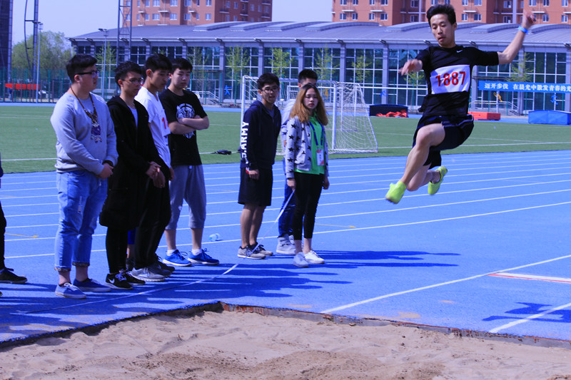 在操場另一端的田賽現(xiàn)場上運動員們的表現(xiàn)同樣精彩。廣告15級的徐博雅奮力一躍,在空中劃出一個完美的流線,跳入沙坑,以5.92米的成績?nèi)〉昧四凶犹h(yuǎn)的第一名。他賽后表示,雖然得了第一,但是成績不是非常滿意,如果有機(jī)會參加校運動會,一定要發(fā)揮出更好的水平。