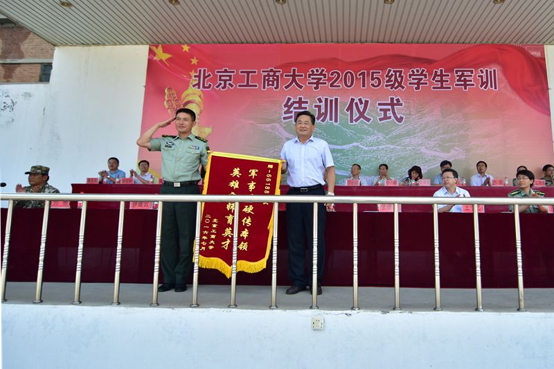 黨委副書記張德玉代表學校向承訓部隊和北京康莊611軍訓基地分別贈送錦旗,表達誠摯謝意。
