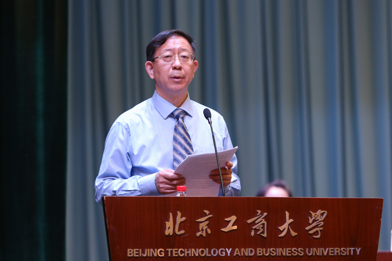 2016級食品學院博士研究生袁英豪代表新生發言,他介紹了自己對學校校訓和校徽的理解,結合求學經歷分享了自己十幾年來的學習感受和北工商情懷。他倡議2016級研究生們能夠珍惜與北工商的緣分,愛上科研,樂在其中,努力在工商大學度過一段美好的科研時光。