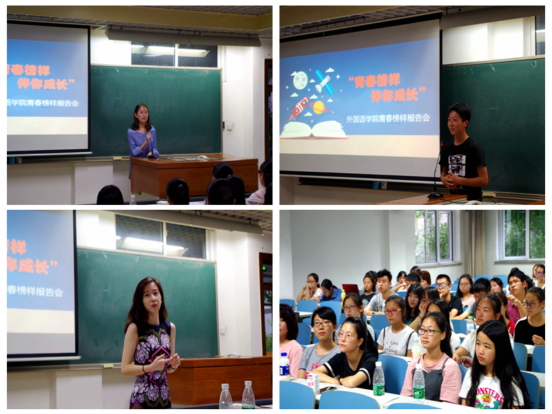 為了幫助同學們更好地適應(yīng)大學生活,外國語學院組織開展“青春榜樣,伴你成長”報告會。外國語學院第15級學生會主席張佳兆向同學們分享了英語學習的方法,強調(diào)英語學習要腳踏實地,勤奮認真。前文藝部部長李伊凡強調(diào)了集體榮譽感的重要性,鼓勵同學們積極參與活動,希望每一個同學能夠不留遺憾的度過大學四年的生活。