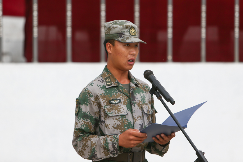 來自商學(xué)院注會(huì)163班康靜同學(xué)代表全體參訓(xùn)學(xué)員發(fā)言。她首先表達(dá)了對(duì)教官和老師們的感謝,談了對(duì)軍訓(xùn)重要意義的理解和參加軍事理論課學(xué)習(xí)的感受。她代表所有參訓(xùn)學(xué)員向教官、老師莊嚴(yán)承諾:軍訓(xùn)期間發(fā)揚(yáng)不怕苦、不怕累的革命樂觀主義精神,以積極快樂的心態(tài)對(duì)待軍訓(xùn);堅(jiān)決服從命令、聽從指揮、嚴(yán)守紀(jì)律,服從教官和老師的管理;嚴(yán)格訓(xùn)練,提高標(biāo)準(zhǔn),爭(zhēng)先創(chuàng)優(yōu),高質(zhì)量的完成所有軍訓(xùn)科目。