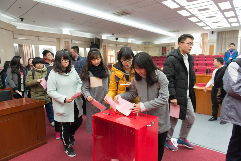 按照海淀區(qū)選舉工作的整體安排,11月15日為海淀區(qū)第十六屆人大代表?yè)Q屆選舉的投票日。結(jié)合學(xué)校實(shí)際,北京工商大學(xué)選區(qū)分別在良鄉(xiāng)校區(qū)模擬法庭和阜成路校區(qū)東區(qū)禮堂設(shè)置了選舉站。學(xué)校高度重視,各選舉單位精心部署、周密安排,廣大選民熱情高漲,積極參加投票。
