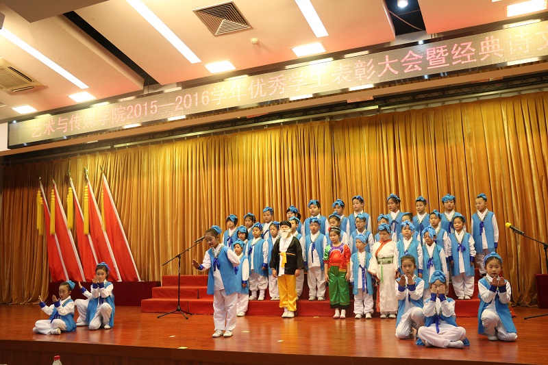 為表彰先進集體和個人,弘揚中華優秀傳統文化,12月14日,藝術與傳媒學院舉辦2015—2016學年優秀學生表彰大會暨經典詩文誦讀大賽。學生處處長呂素香,院領導羅子明、林剛、鄭子云、高麗華、宋煜、劉晶,各系主任、班主任、輔導員出席大會。北工商附屬小學校長李慶華、副校長張景輝,附屬中學工會主席張亞婷應邀參會。學院獲獎學生代表、附中附小學生與教師代表以及16級全體參賽隊伍共計400余人參加大會。
