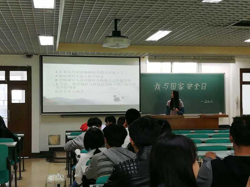 4月19日,學生工作部以致知學堂為平臺邀請國家安全局專家舉辦了國家安全知識專題講座,并組織國家安全知識網絡競賽,答題人數達1563人。同時以班級、團支部為單位,組織了主題團日和班會活動。由班主任組織學生學習我國國家安全形勢和任務,學習并掌握反恐基本常識。