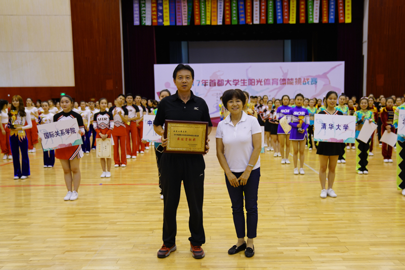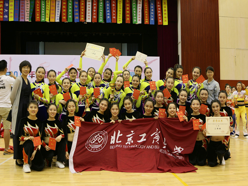 頒獎儀式開始前,北京體育大學(xué)、北京工商大學(xué)和北京語言大學(xué)分別作為甲、乙、丙三組比賽的第一名,再次為大家進(jìn)行表演,重現(xiàn)了各自的風(fēng)采,贏得場下陣陣歡呼。閉幕式上各校代表隊伴隨著歡快的音樂,整齊劃一地舞動著,他們用肢體訴說著愉悅和歡快,展現(xiàn)了青年大學(xué)生的陽光和活力。我校還獲得了最佳貢獻(xiàn)獎。