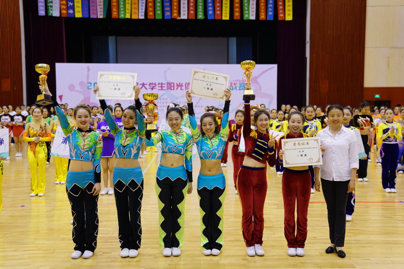 比賽分為甲(專業(yè))、乙、丙三組。甲組的參賽隊伍北京體育大學(xué)代表隊由8名男運動員和8名女運動員組成,他們將武術(shù)、街舞與體操相結(jié)合,流暢的動作折射出舞臺背后的努力,高難度自選動作的完美演繹引起觀眾們的驚呼。最終北京體育大學(xué)以94.27的成績獲得甲組自選動作一等獎。同時,中央民族大學(xué)大學(xué)也以優(yōu)異成績獲得了甲組規(guī)定動作的一等獎。