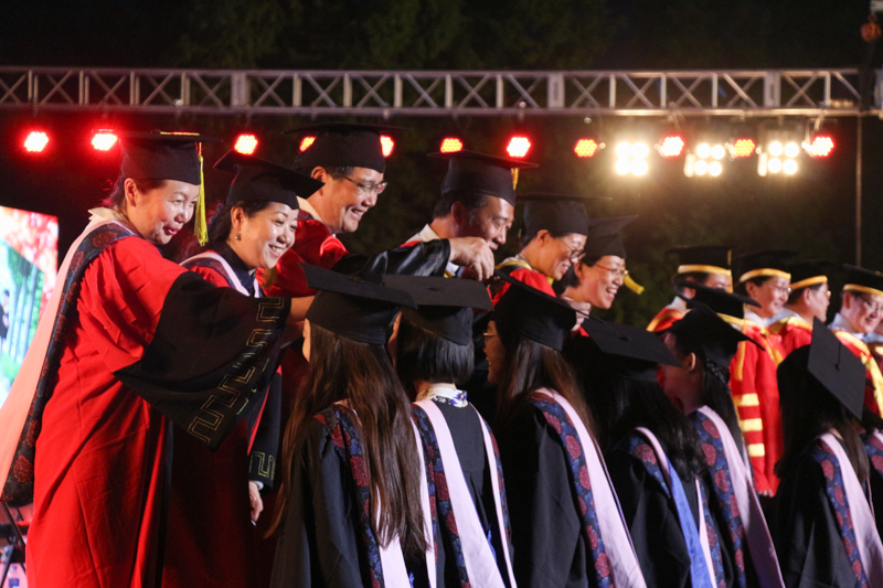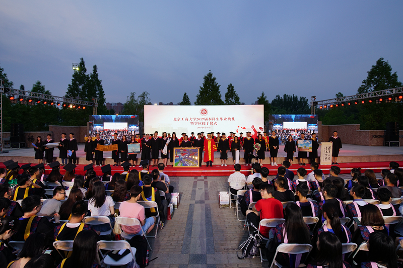 學位授予儀式莊嚴而隆重。穿著畢業服的學子們從容地走到臺前,迎接這一難忘的時刻。他們帶回了一份沉甸甸的證書,送走了四年勤奮苦讀的歲月;這些變化不僅僅是學士帽上隨風飄揚的流蘇,還有他們不斷提升的人生境界、不斷充實的內心以及即將實現的理想。在北工商的日子已經過去,希望他們乘著夢想的翅膀,飛得更高更遠。
