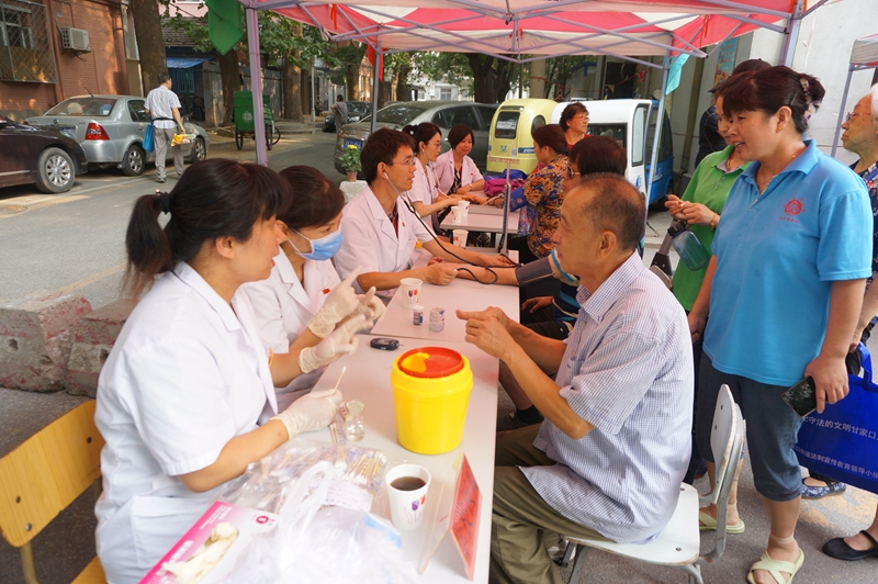 為紀念中國共產黨成立96周年,進一步鞏固“兩學一做”學習教育成果,增強后勤黨組織凝聚力,充分發揮黨支部戰斗堡壘作用和黨員先鋒模范作用,6月30日,后勤部門黨總支聯合學校社區居委會、解放軍總醫院第一附屬醫院(原三〇四醫院)、甘家口社區醫院、甘家口大廈、市熱力集團、甘家口食藥監所等多家單位,在阜成路西家屬區開展了以“不忘初心跟黨走,后勤喜迎十九大”為主題的黨日活動。后勤部門黨總支黨員、入黨積極分子、各科室骨干和相關單位100多人參與便民服務。